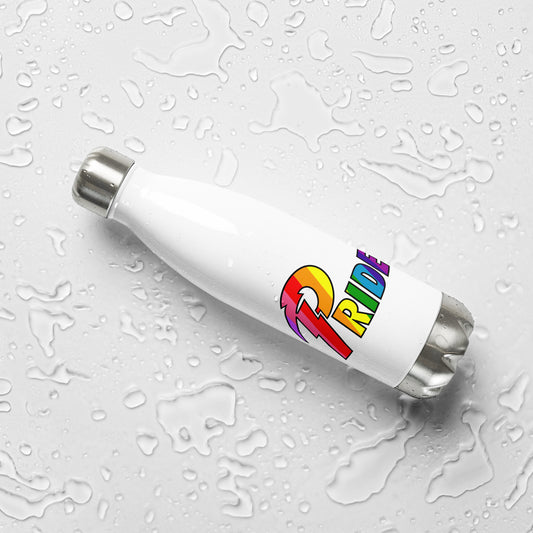 A Pride White Bolt stainless steel water bottle